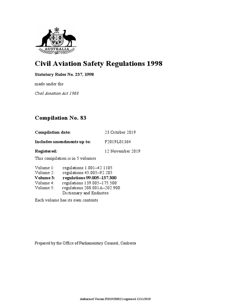 Civil Aviation Safety Regulations 1998 overview PDF Aircraft