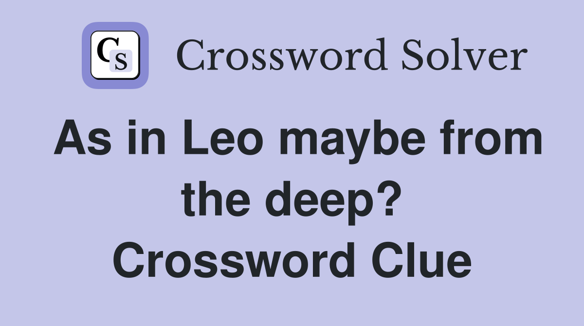 As in Leo maybe from the deep? Crossword Clue Answers Crossword Solver