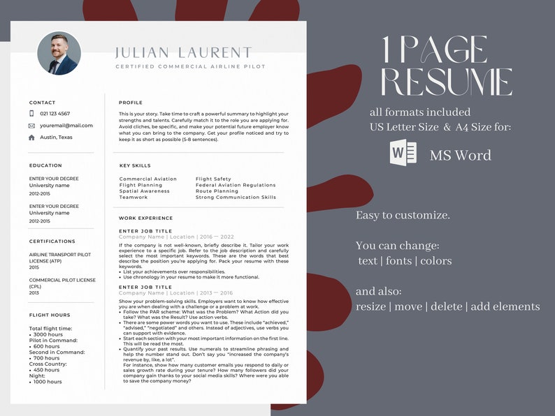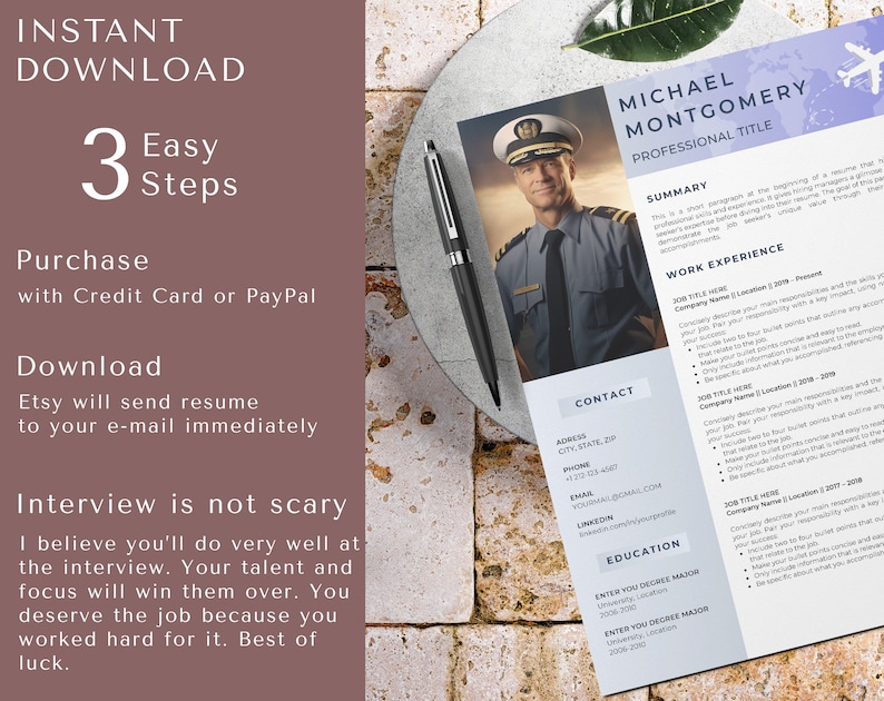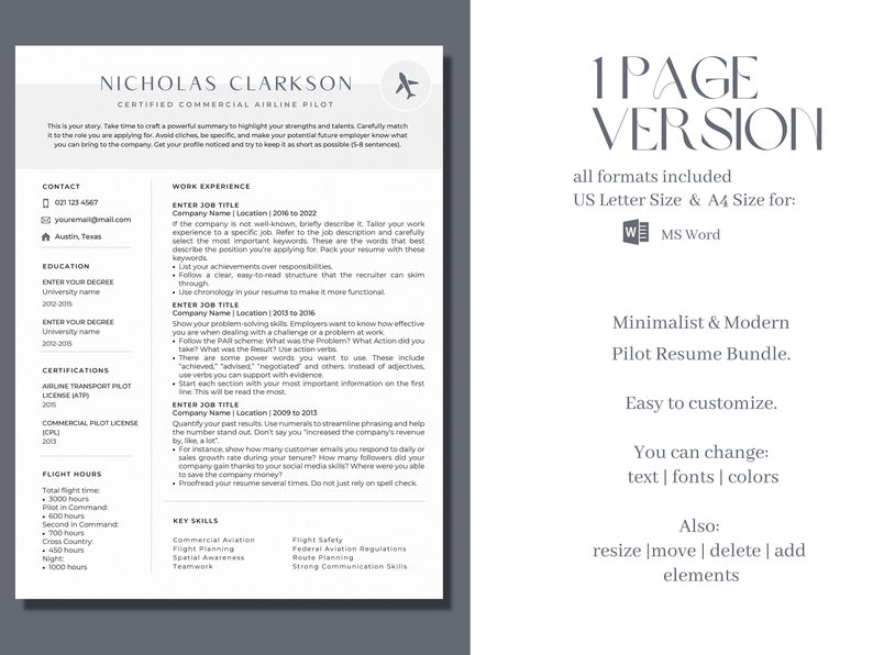 Pilot Resume Template for Canva Airline Pilot Resume Etsy