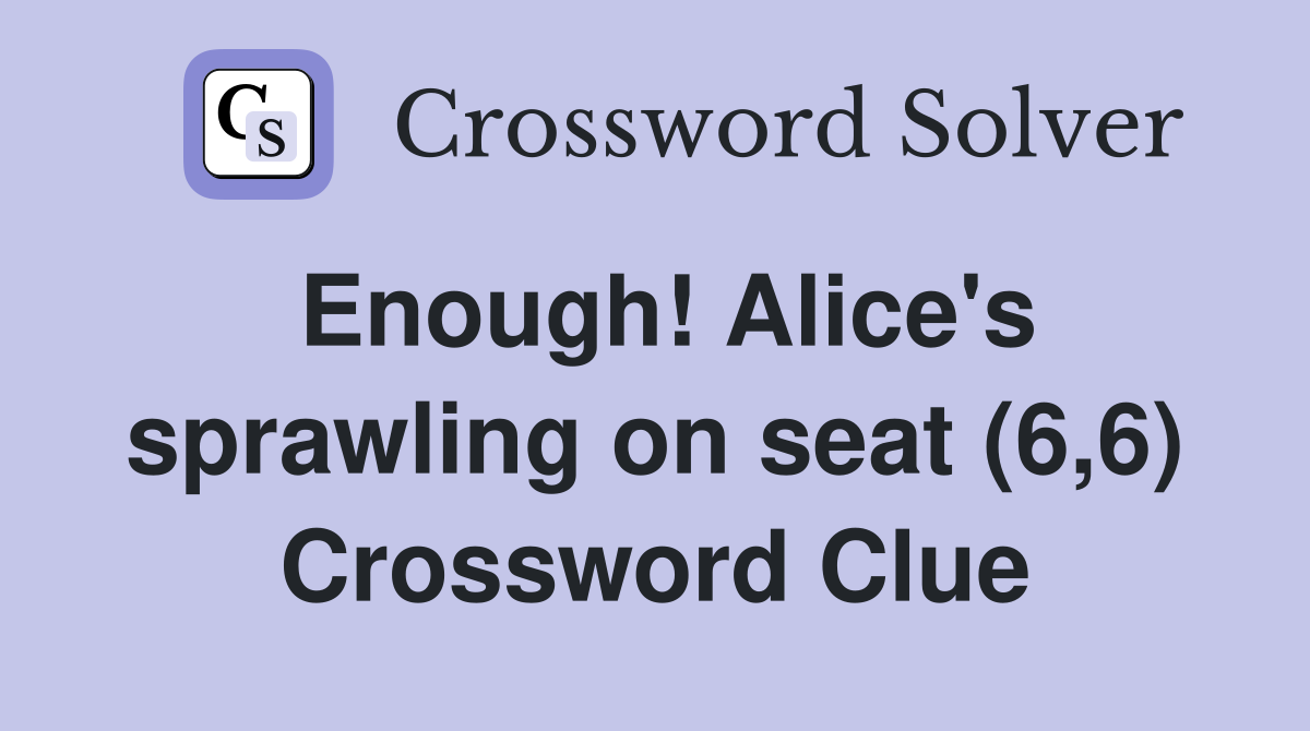 Enough Alice #39 s sprawling on seat (6 6) Crossword Clue Answers