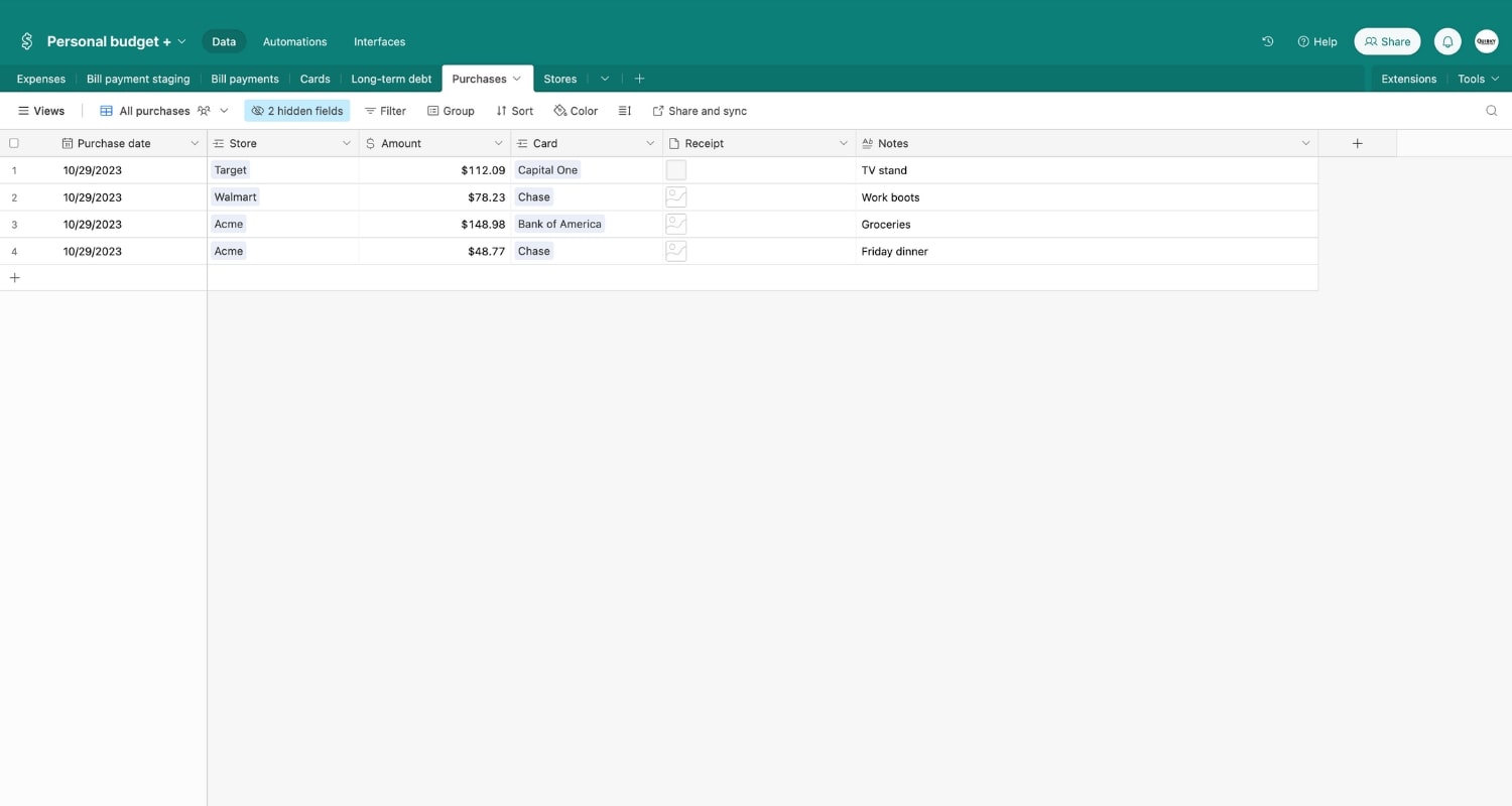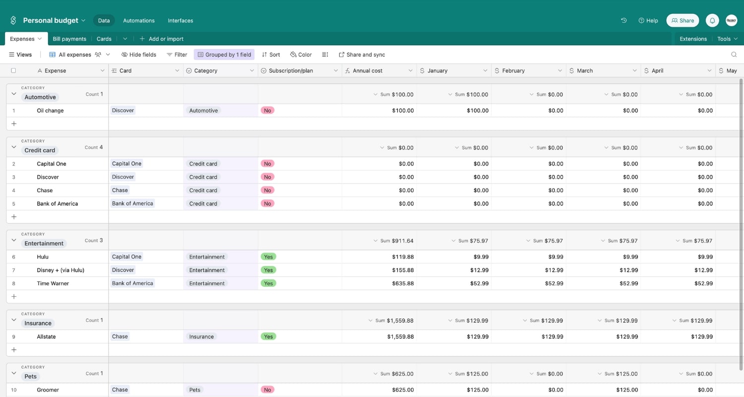 Personal budget Airtable base