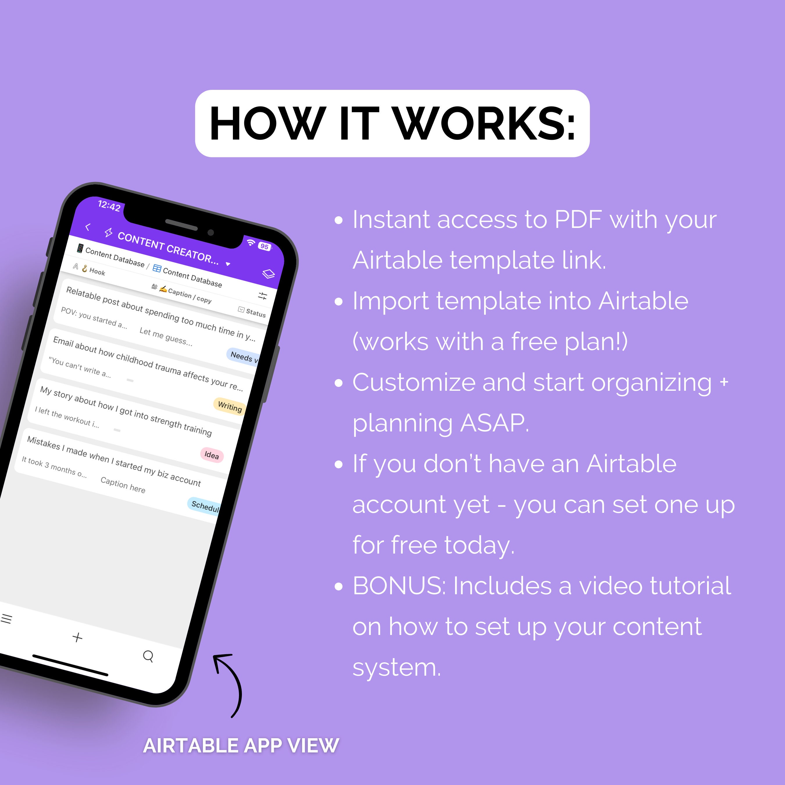 Social Media Content Planner for Airtable Content Calendar Etsy