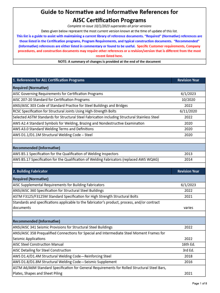 References For Aisc Certification Programs Oct 2023 Download Free PDF