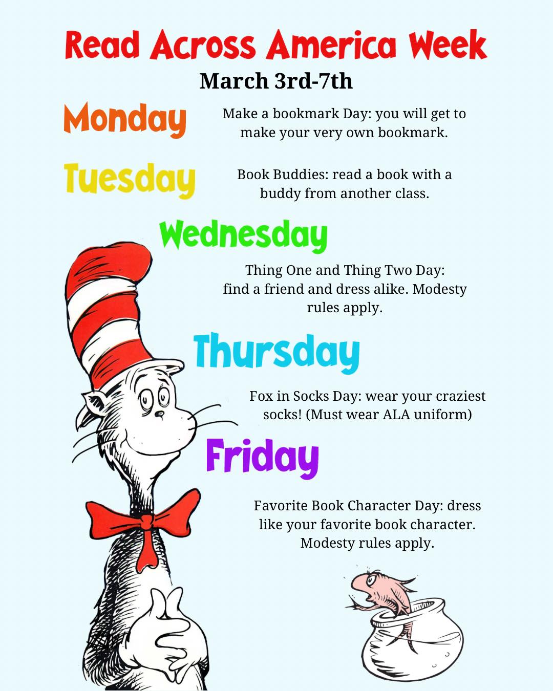 Celebrate Read Across America Spirit Week at ALA Mesa Pre K 6 Post