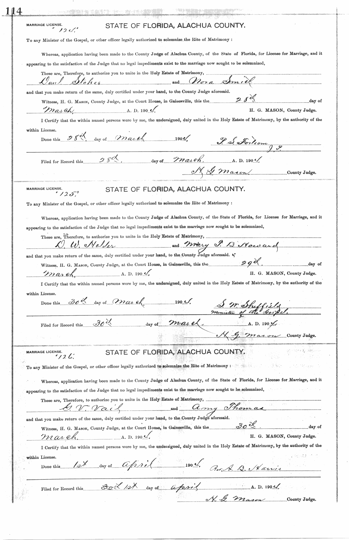 Marriage Record E Alachua County Florida