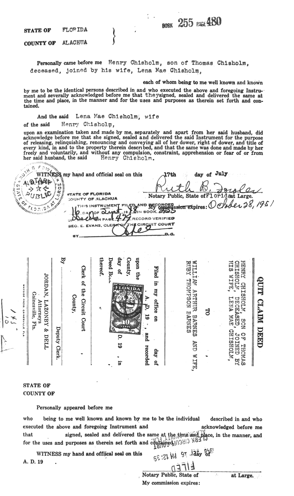 Deed Record 255 Alachua County Florida