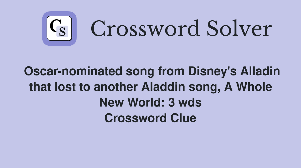 Oscar nominated song from Disney s Alladin that lost to another Aladdin