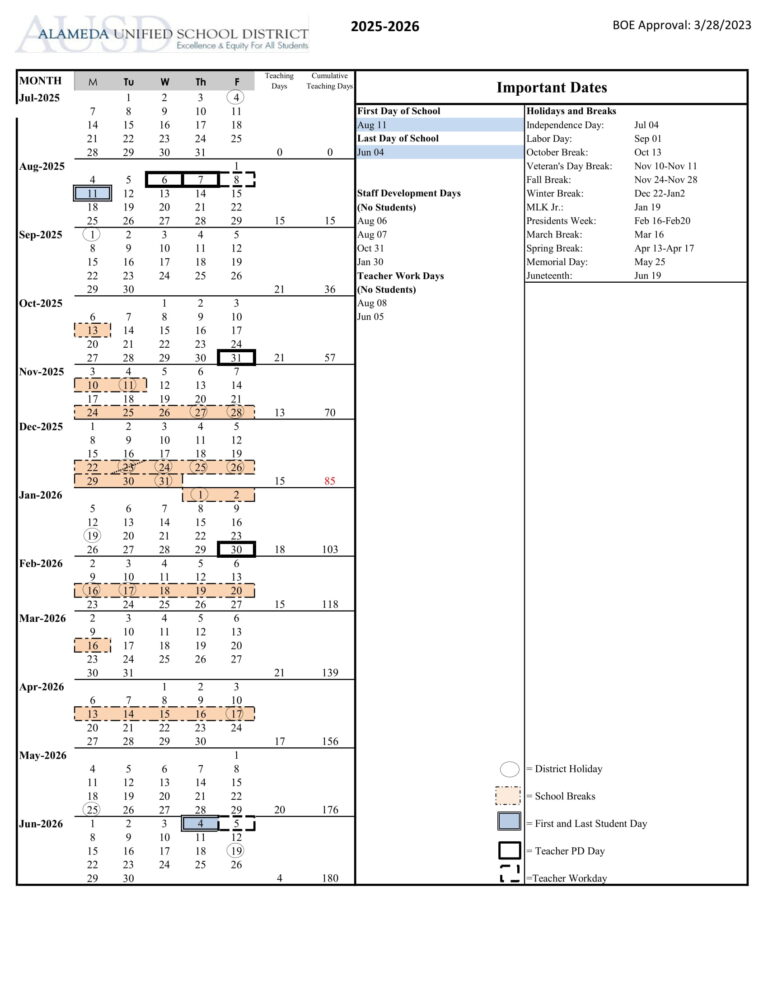Alameda Unified School District Calendar 25 26 PDF EduCounty