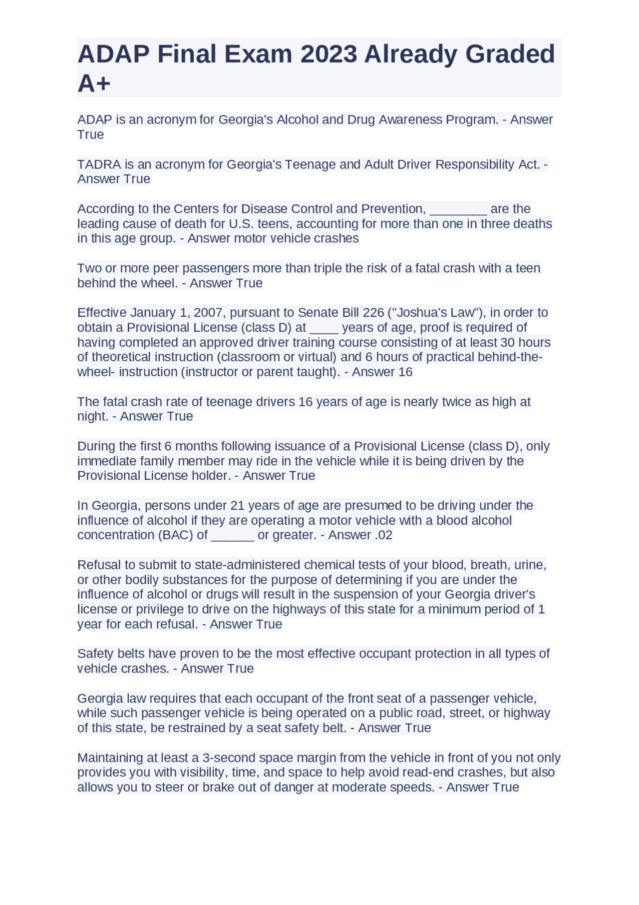 GA Alcohol And Drug Awareness Program (ADAP) Final Exam 2016 2025