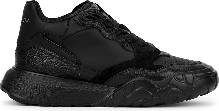 Alexander McQueen Court Black Panelled Leather Sneakers ShopStyle