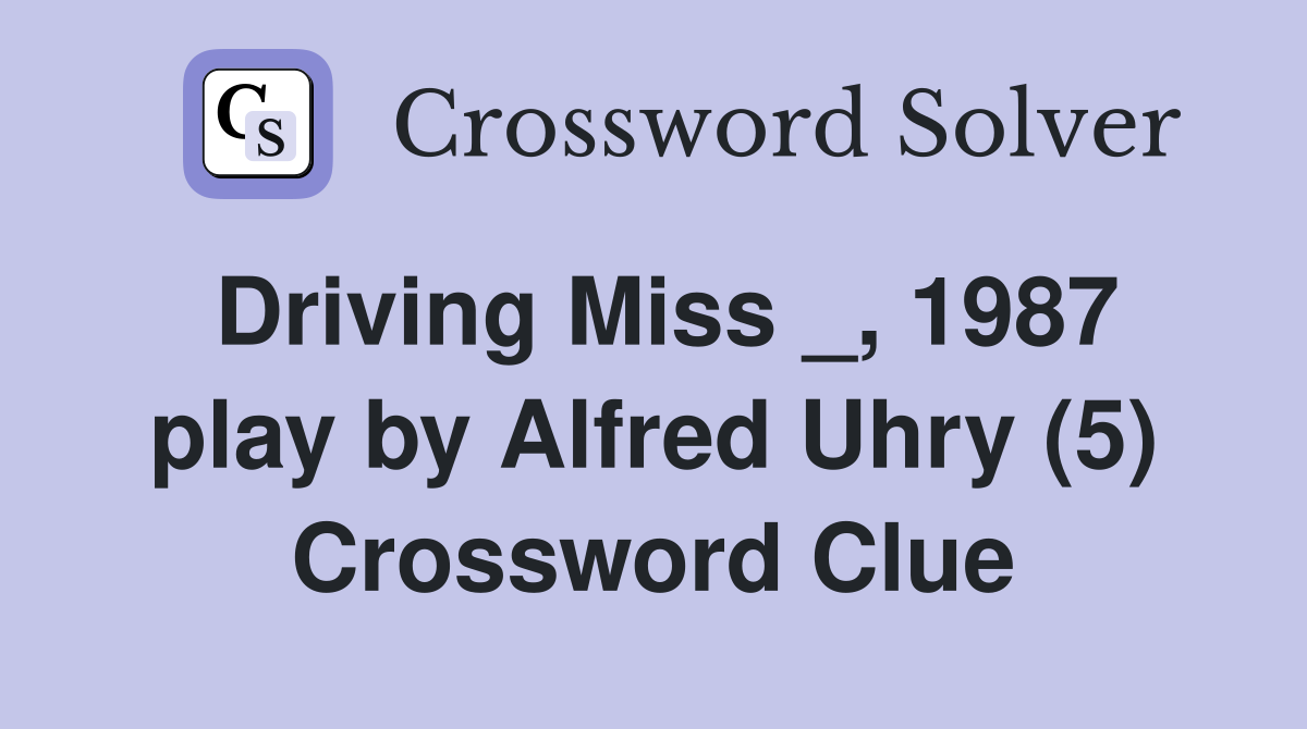 Driving Miss 1987 play by Alfred Uhry (5) Crossword Clue Answers