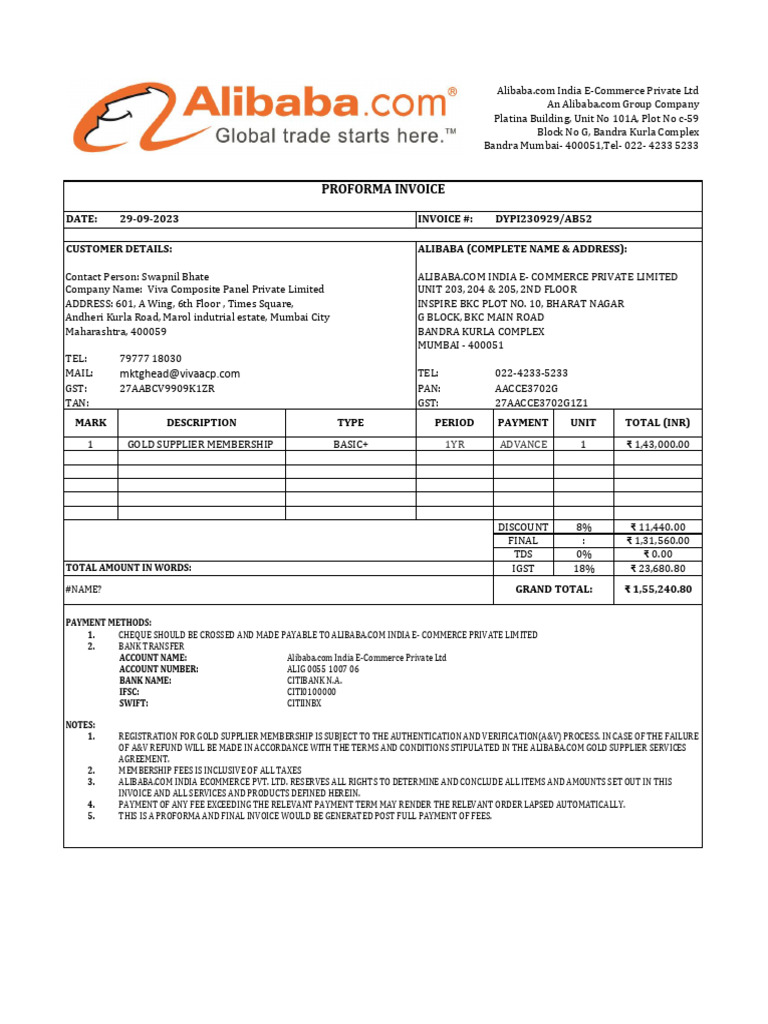Alibaba PI PDF Invoice Alibaba Group
