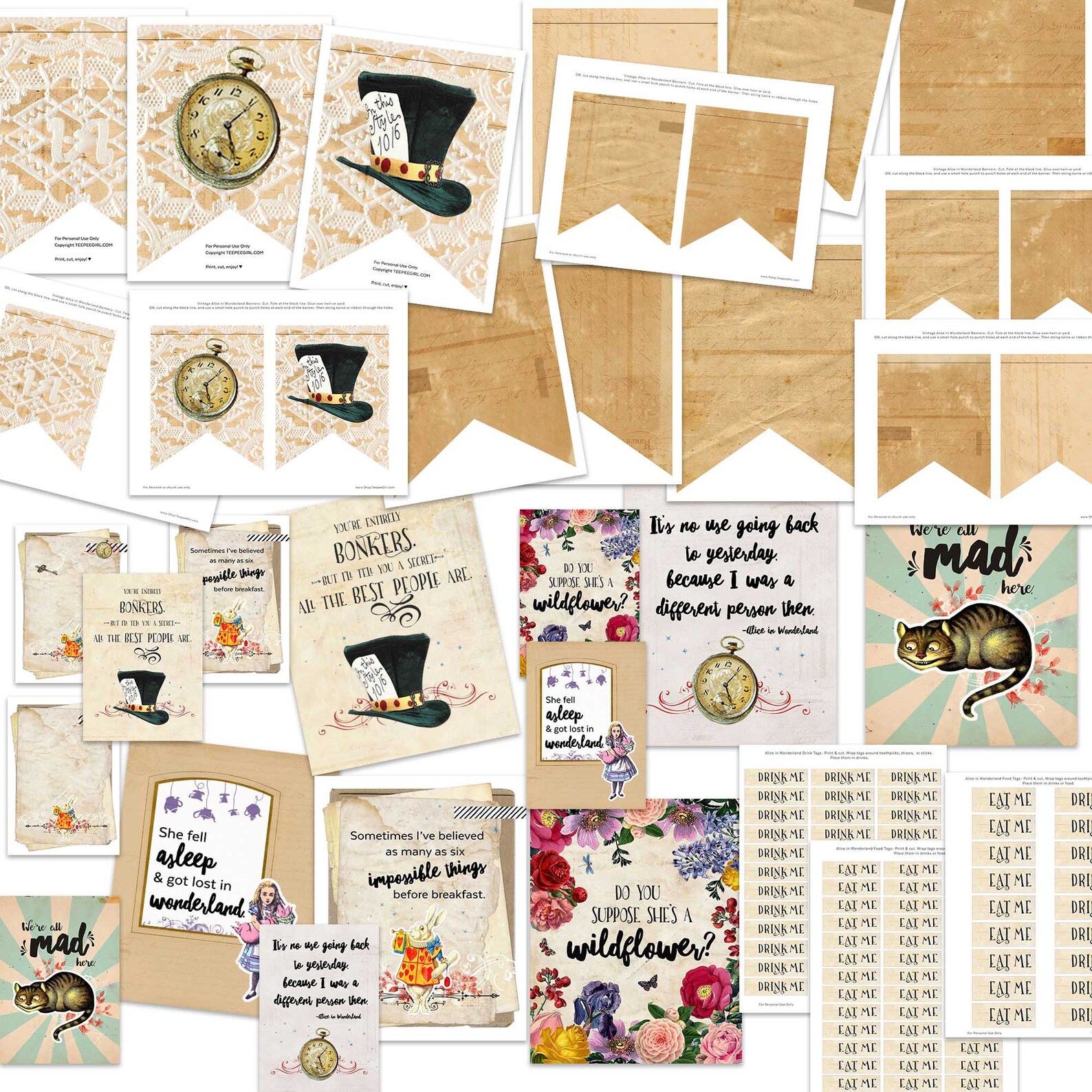 Alice in Wonderland Decorations FULL Party Pack Printable Party