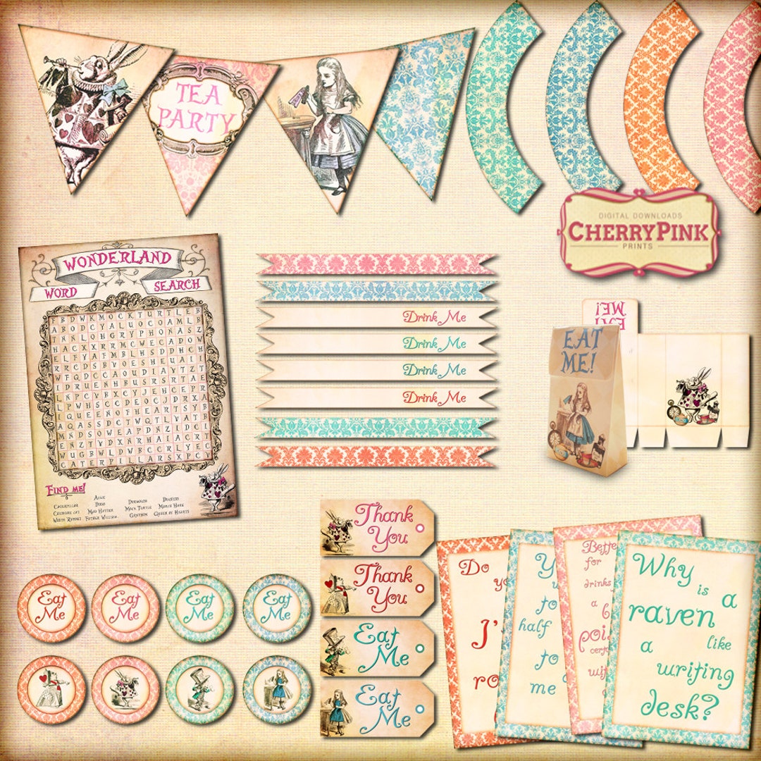 Alice in Wonderland Printable Kit Alice in Wonderland Party Etsy