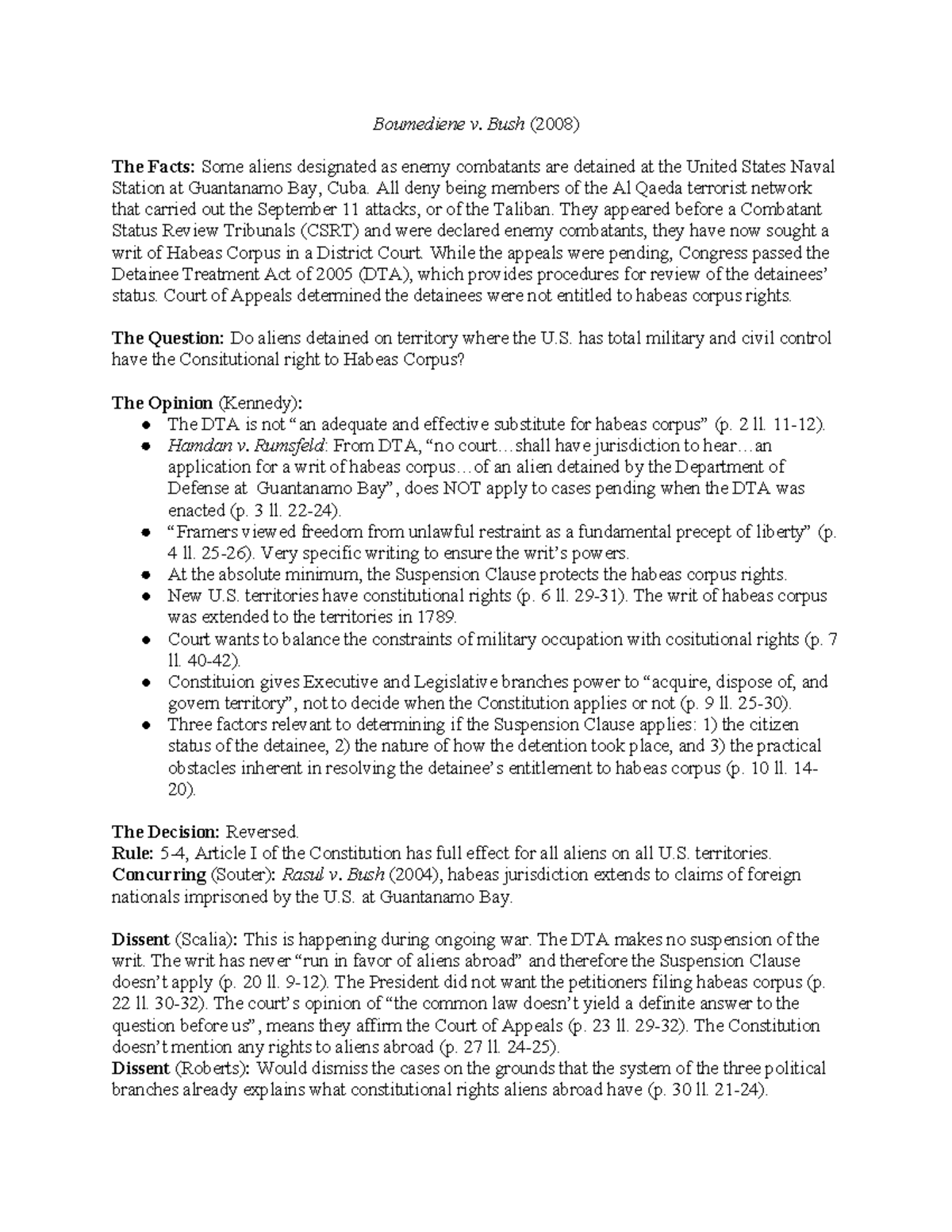 Boumediene v Bush Brief Boumediene v Bush (2008) The Facts: Some