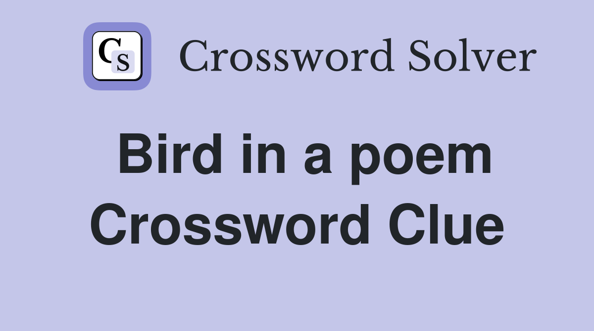 Bird in a poem Crossword Clue Answers Crossword Solver