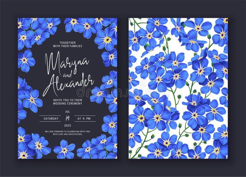 Two Spring Banner with Blooming Blue Forget me nots Stock Vector