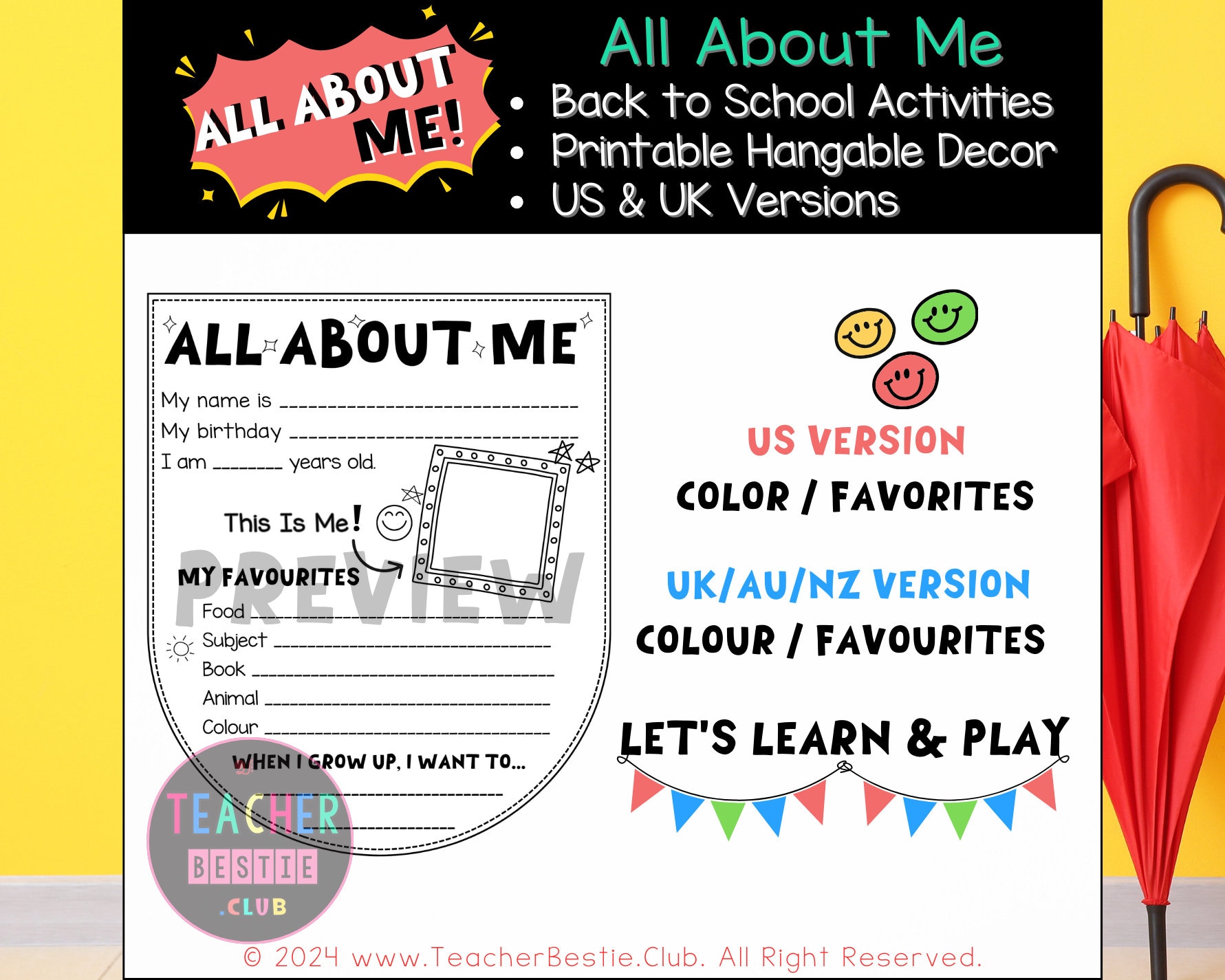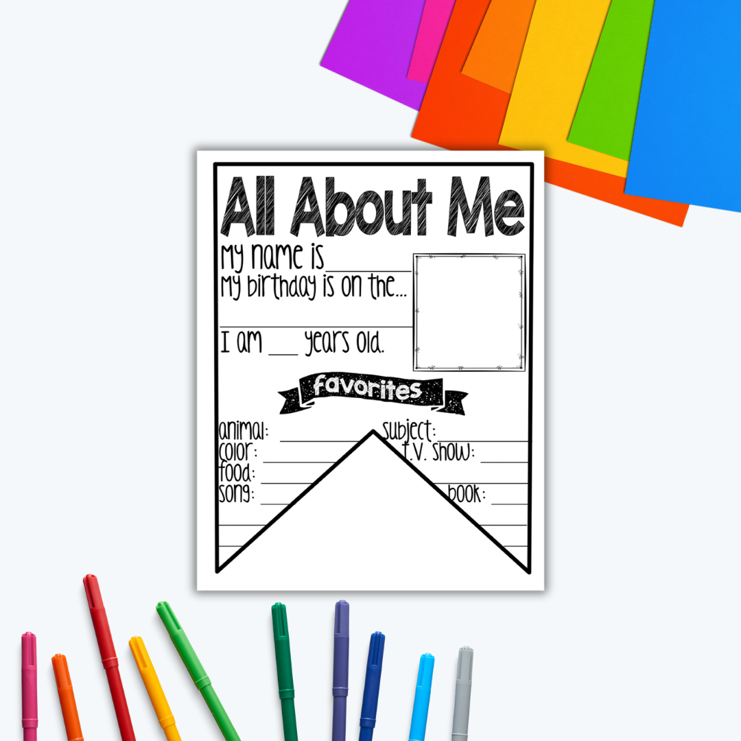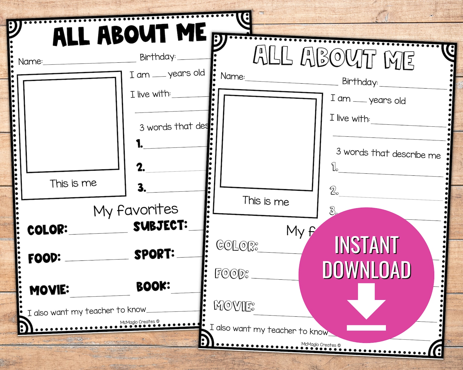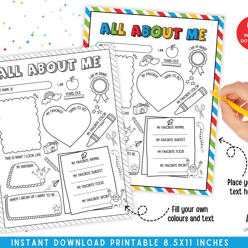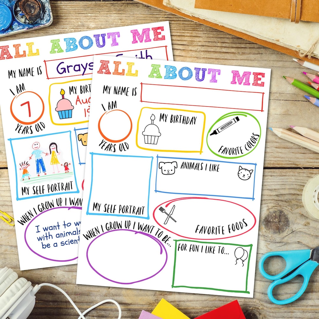 All About Me Printable Kids Template Favorite Things Back to School Get