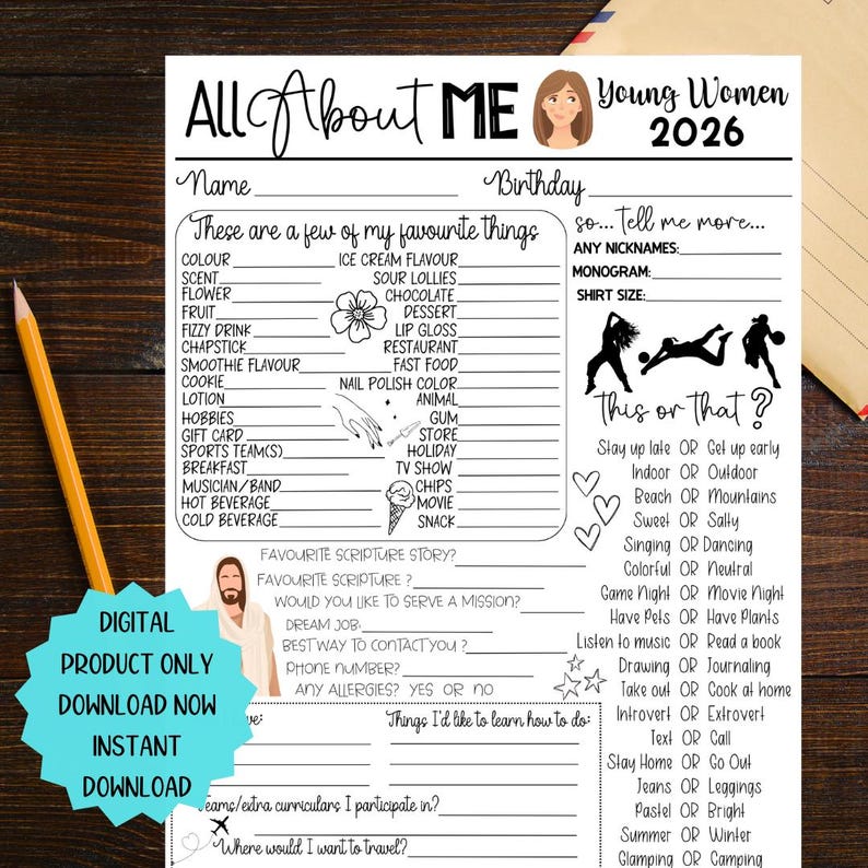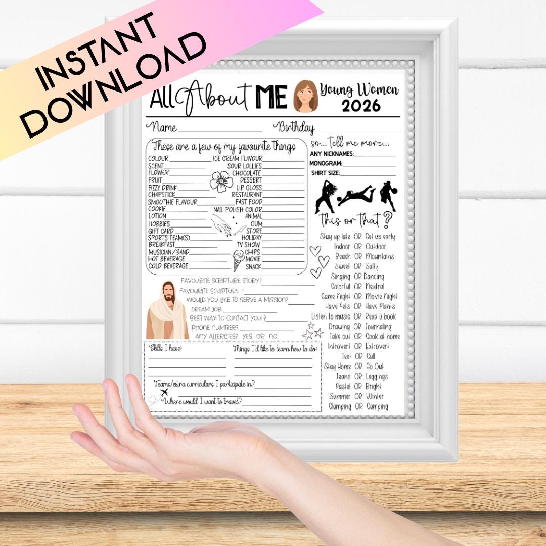 All About Me Printable 2026 Questionnaire for Young Women (PDF Download