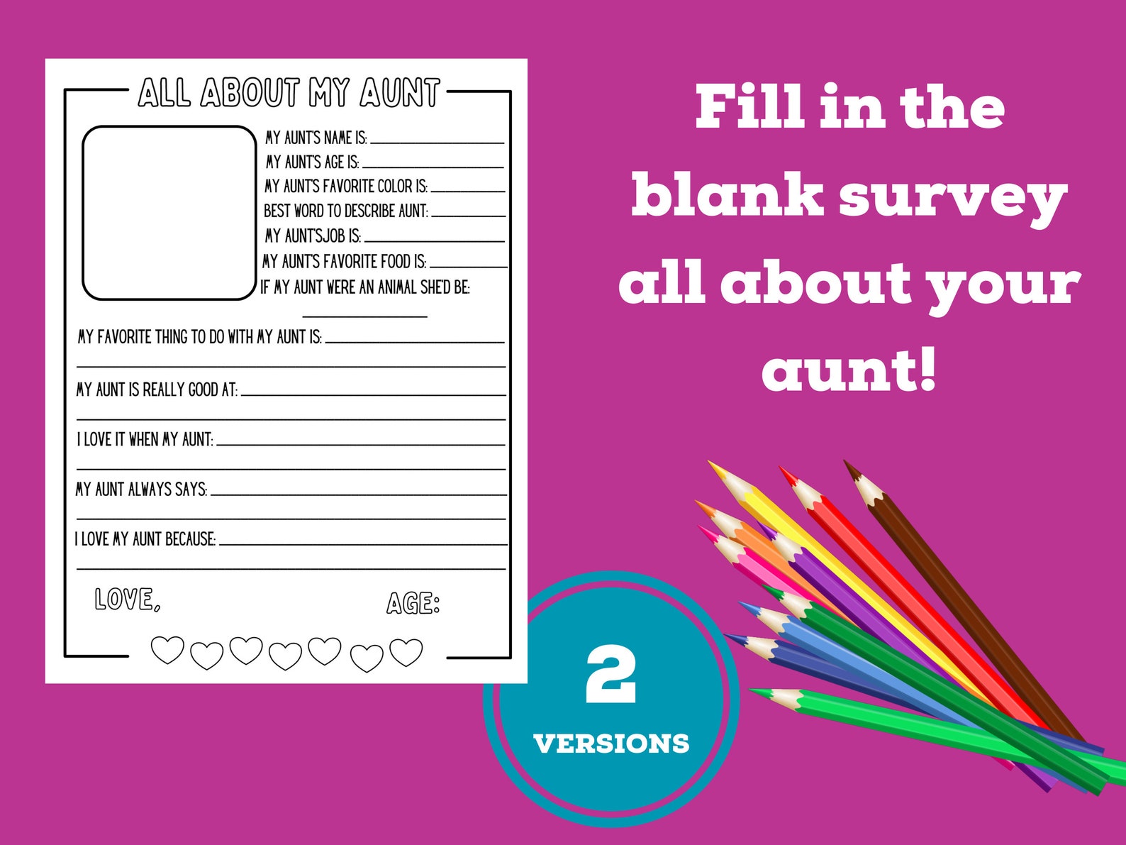 Printable All About My Aunt Activity Sheet Gift for Mothers Day to