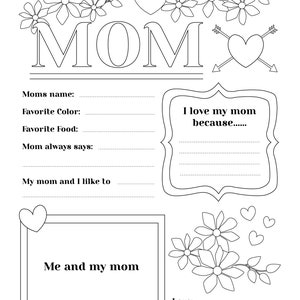 All About My Mom Mother #39 s Day Printable PDF US Letter 8 5x11 Instant