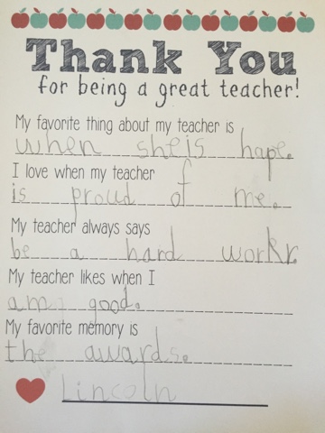 Teacher Appreciation Printable/ Teacher Fill in the Blank / My Etsy