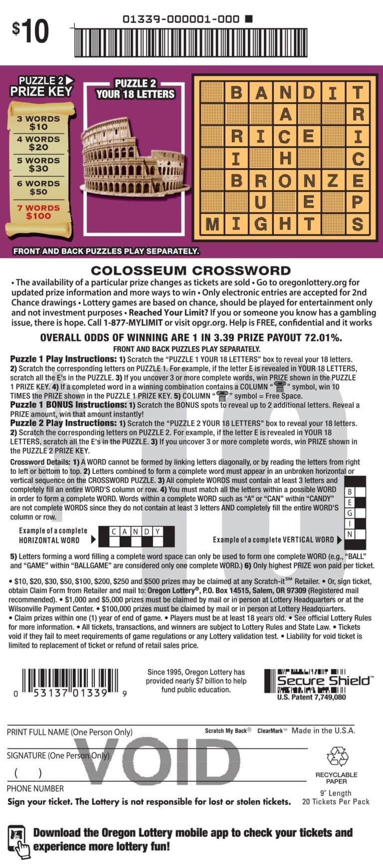 Colosseum Crossword Lottery Scratch Tickets Oregon Lottery