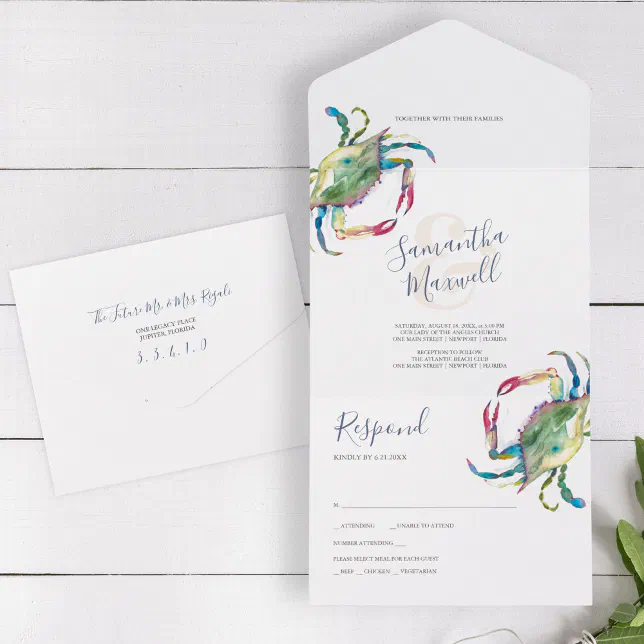 Crab Beach Wedding All In One Invitation Template Zazzle