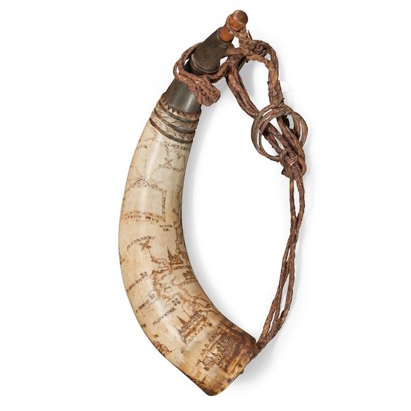 Bonhams Skinner : A CARVED AMERICAN MAP POWDER HORN