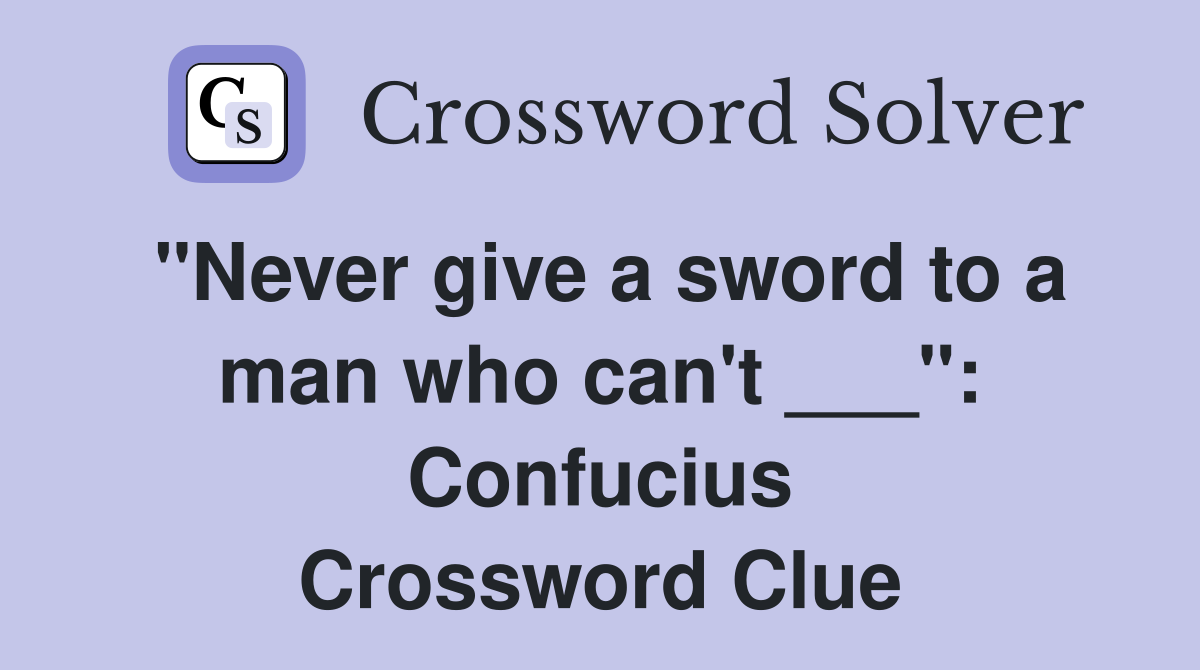 quot Never give a sword to a man who can #39 t quot : Confucius Crossword Clue