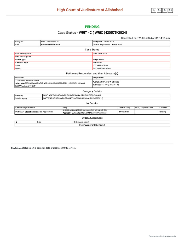 Allahabad High Court Case Status Update PDF Judiciaries Public Law
