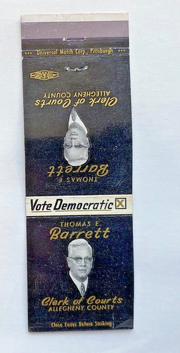 1940 #39 s Matchbook Thomas E Barrett Clerk of Courts Allegheny Co
