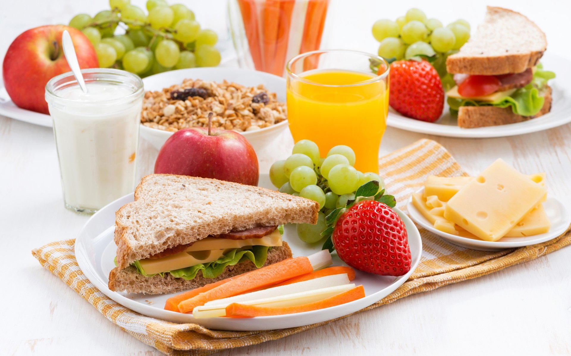 Download Still Life Sandwich Grapes Juice Strawberry Milk Cheese Apple