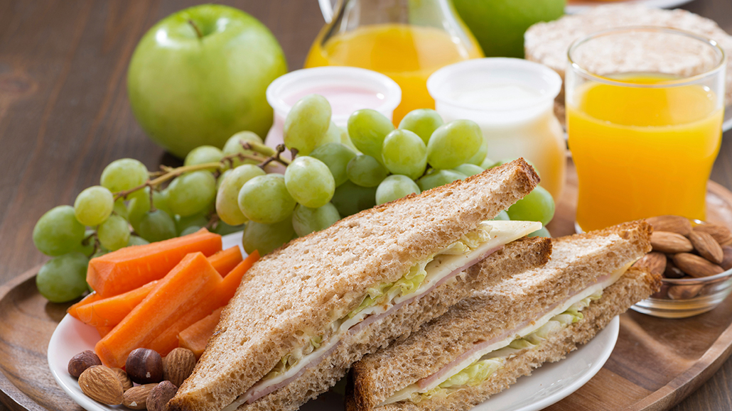 School Lunch with Sandwiches Fruit and Yogurt Stock Photo Image of