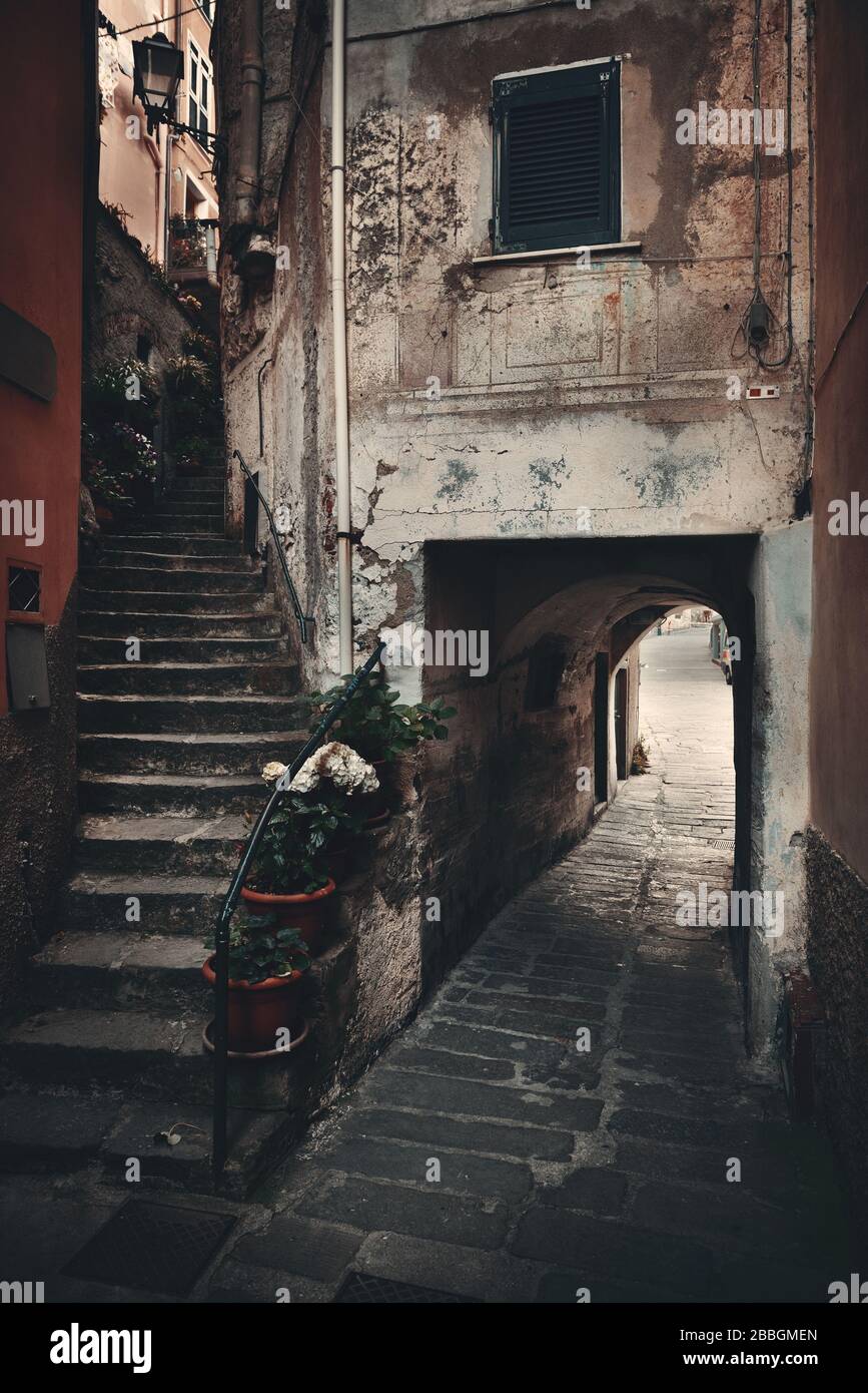 Typical alley view in Riomaggiore in Cinque Terre Italy Stock Photo