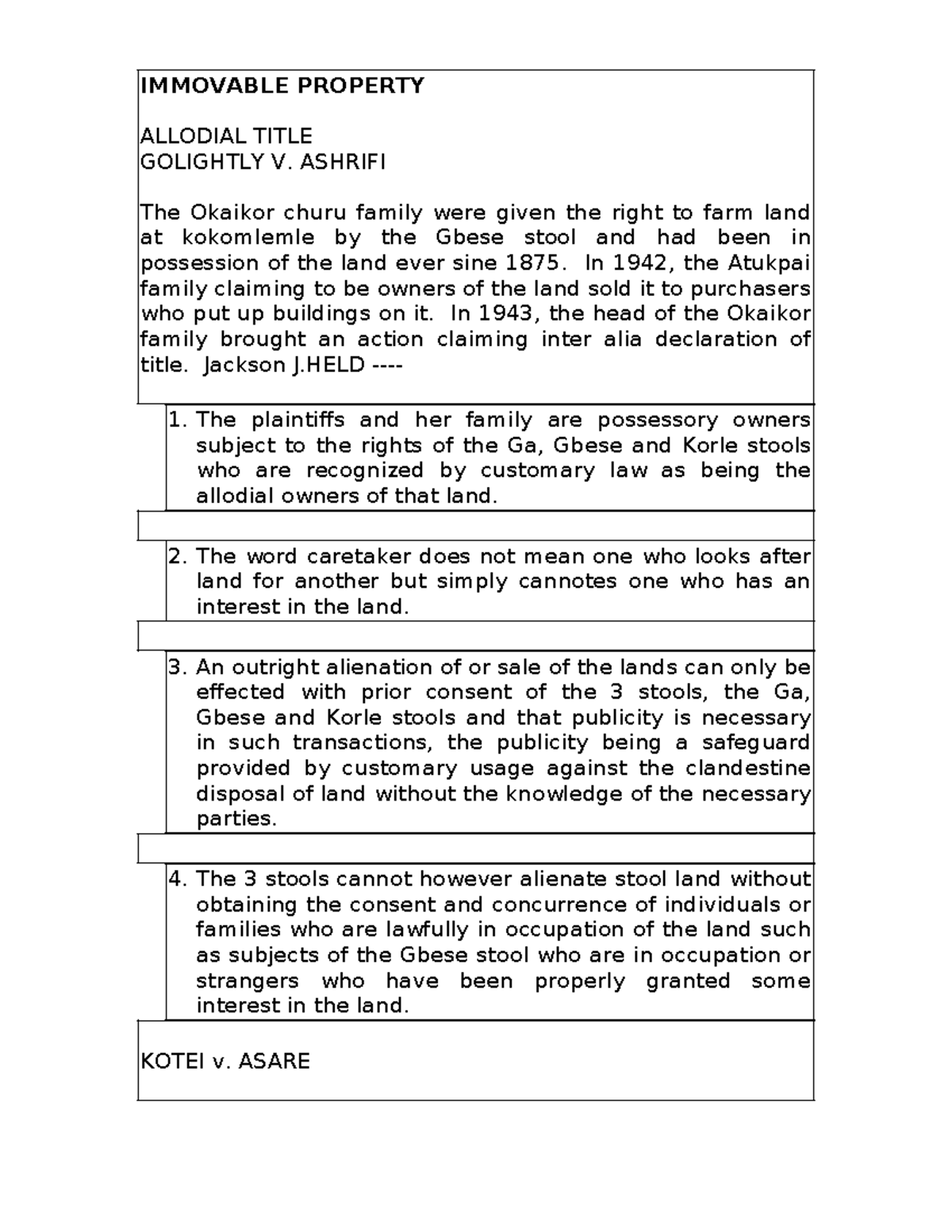 Briefed land cases land law notes IMMOVABLE PROPERTY ALLODIAL TITLE