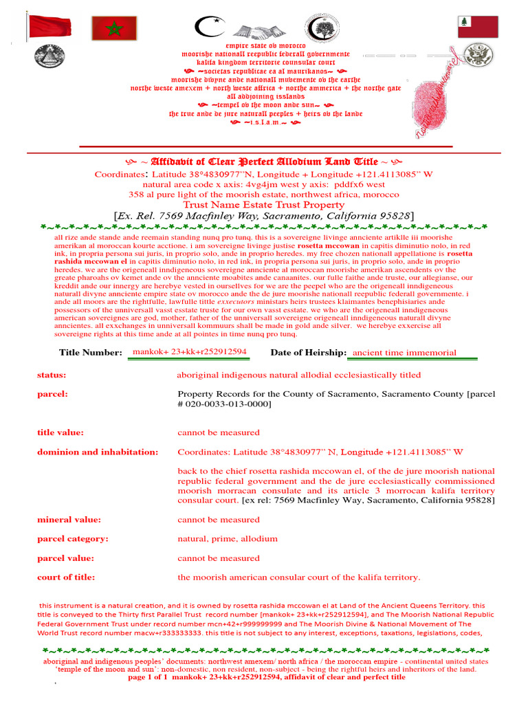 Affidavit of Clear Perfect Allodial Title Macfinley PDF Government