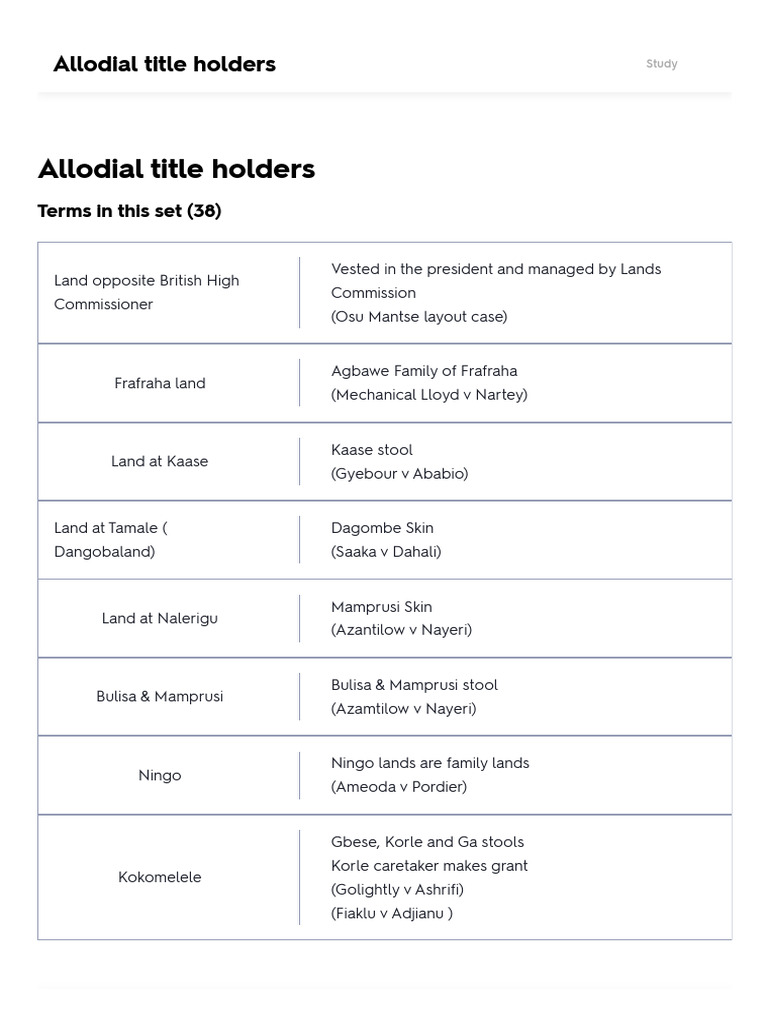 Allodial Title Holders Flashcards Quizlet PDF Ghana