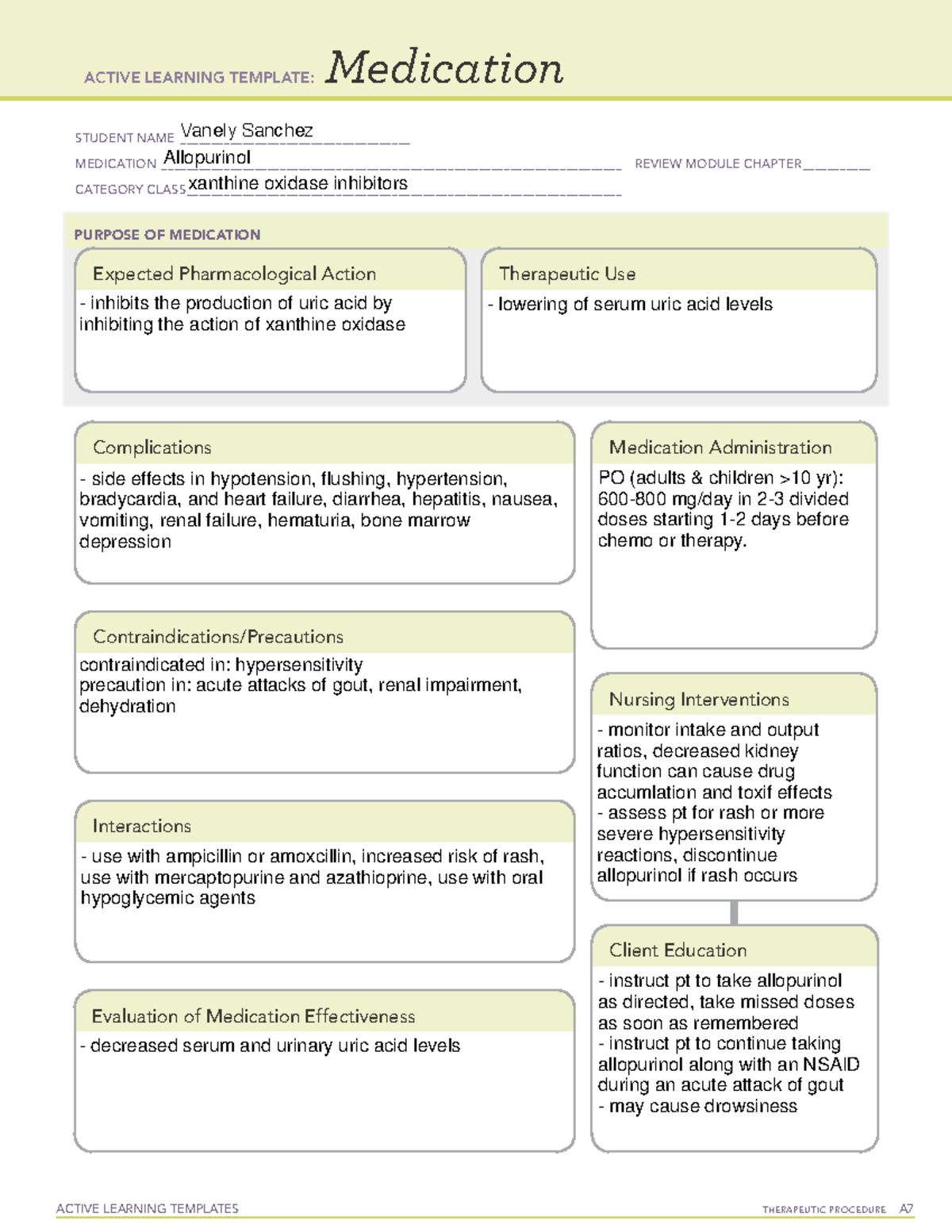 Allopurinol ATI medication template ACTIVE LEARNING TEMPLATES