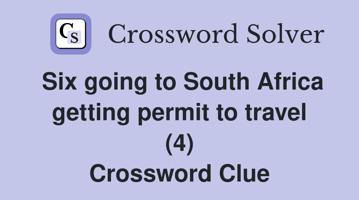 Six going to South Africa getting permit to travel (4) Crossword Clue
