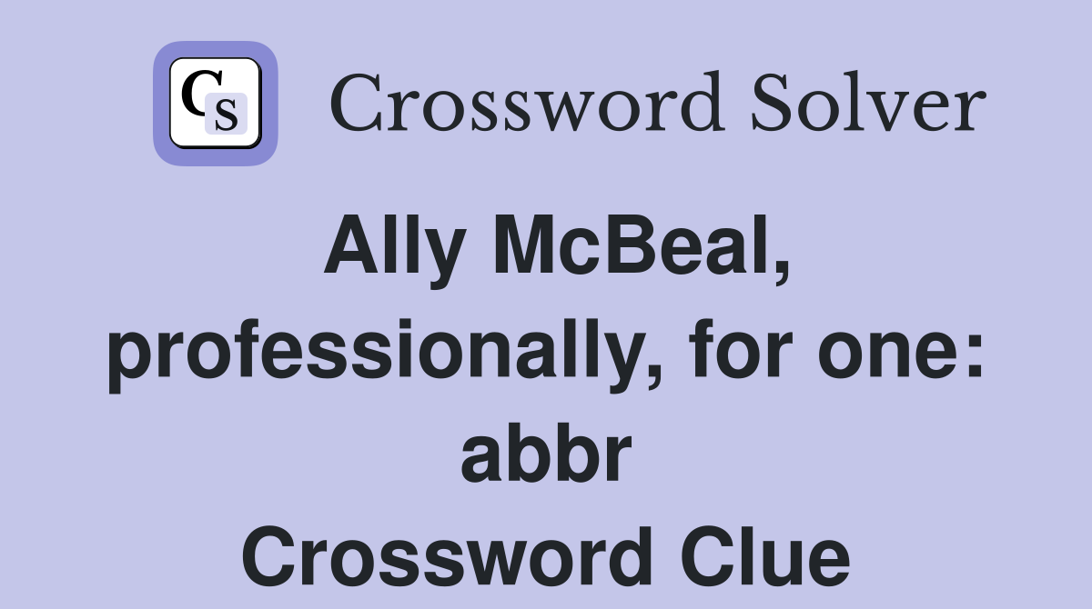 Ally McBeal professionally for one: abbr Crossword Clue Answers
