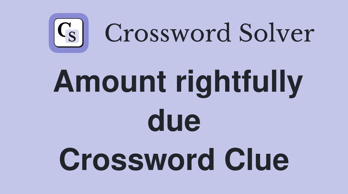 Amount rightfully due Crossword Clue Answers Crossword Solver