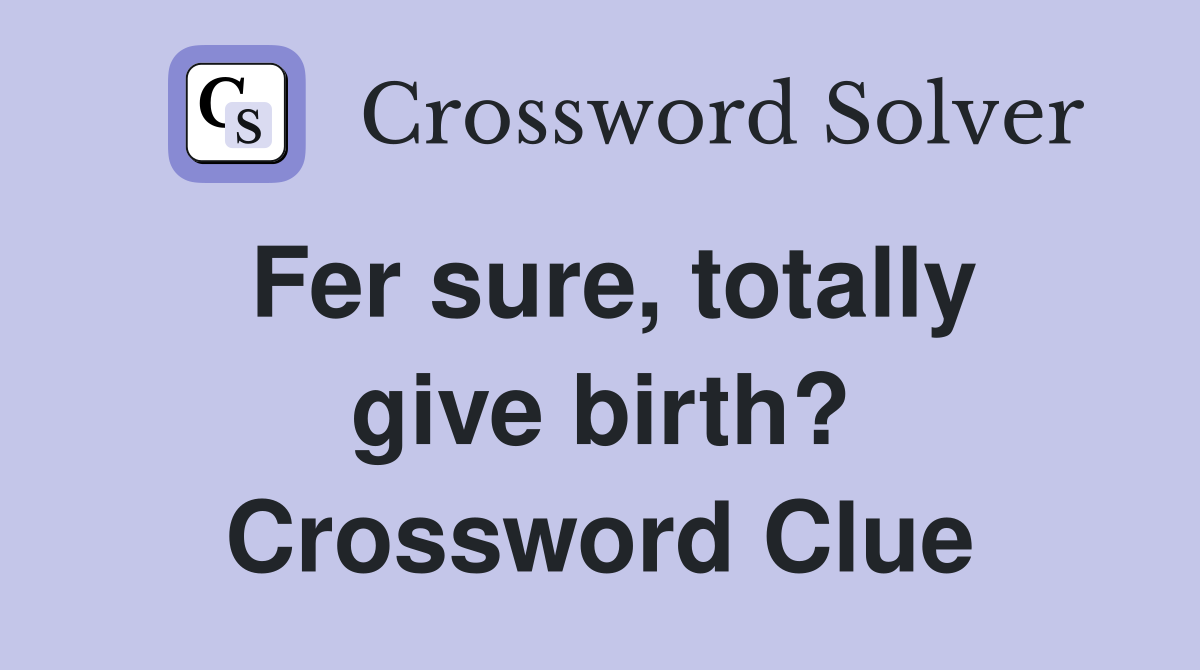 Fer sure totally give birth? Crossword Clue Answers Crossword Solver