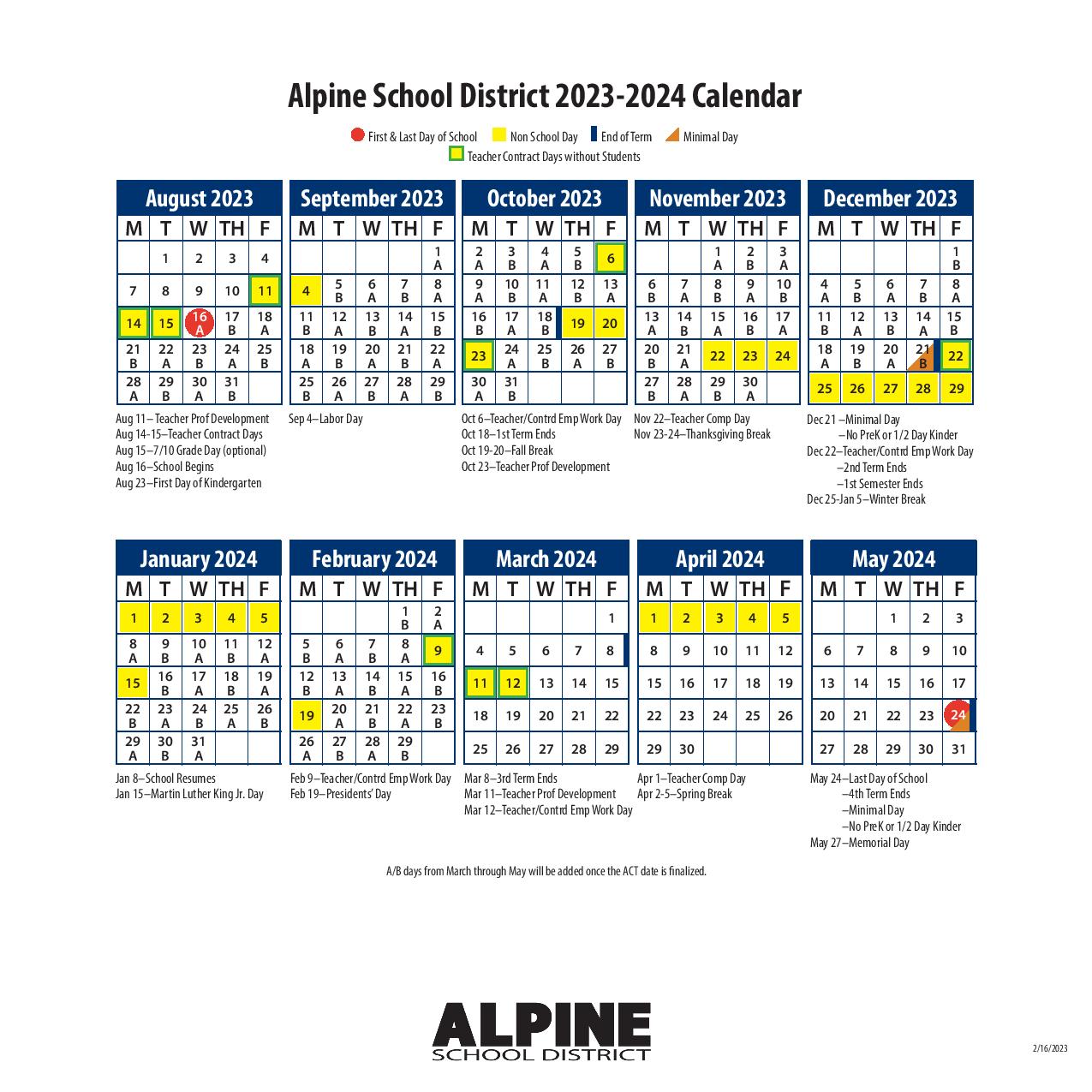 Alpine School District Calendar Holidays 2025 2026 PDF School