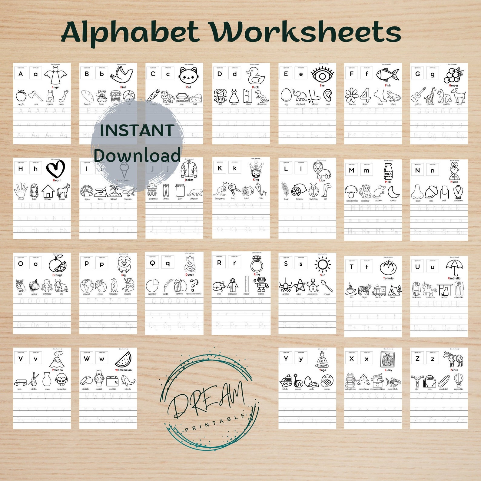 Alphabet Worksheets Upper and Lowercase Alphabet Printable Etsy