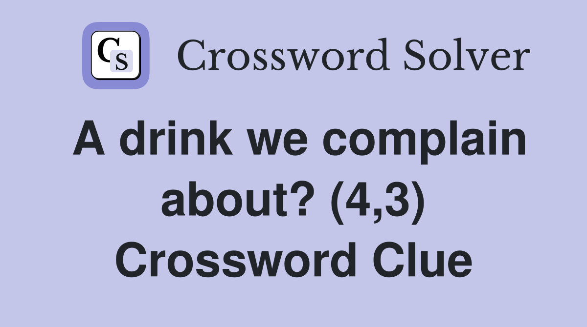 A drink we complain about? (4 3) Crossword Clue Answers Crossword