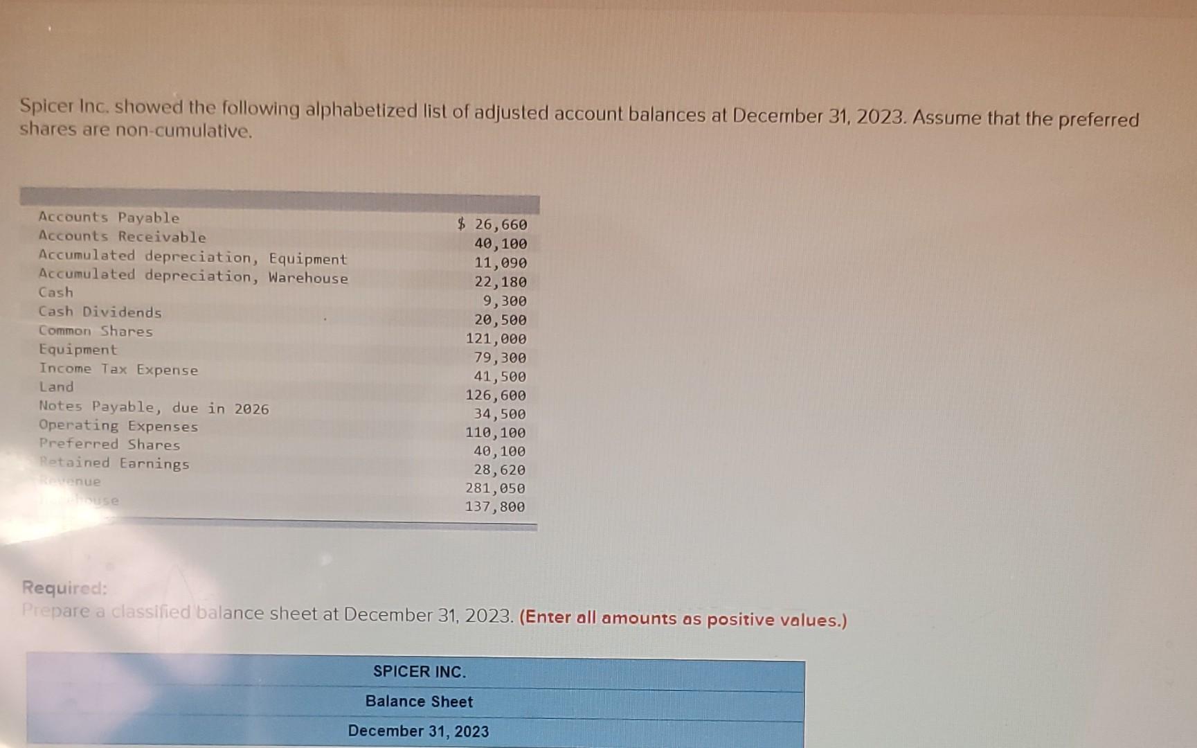 Solved Spicer Inc showed the following alphabetized list of Chegg com