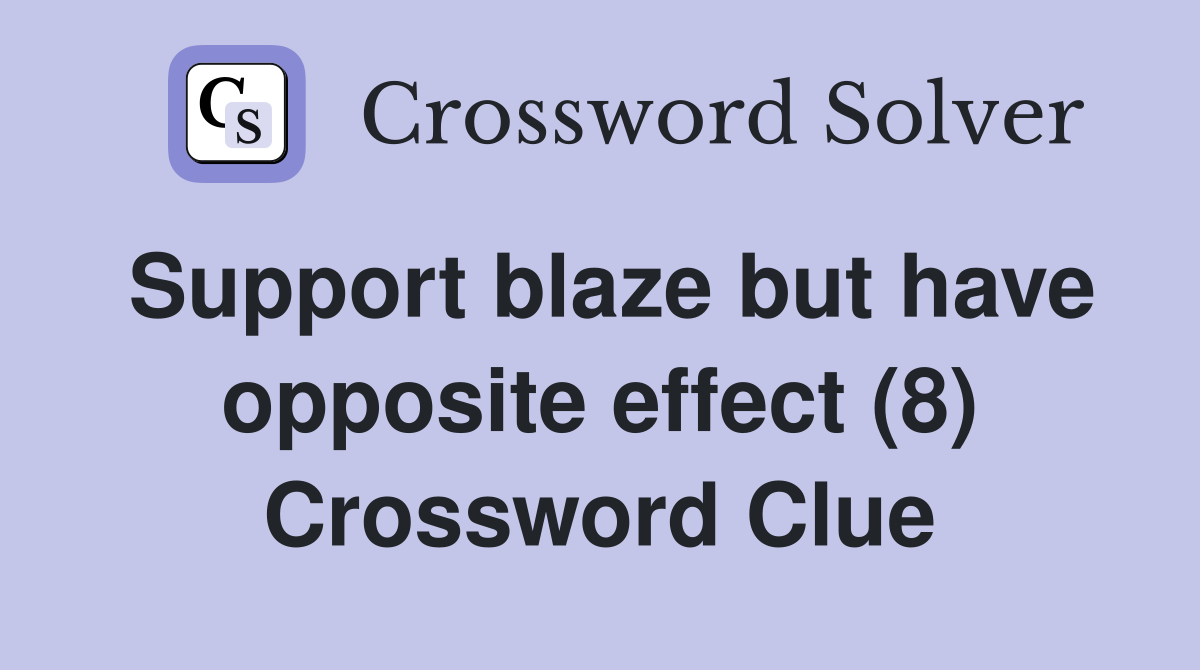 Support blaze but have opposite effect (8) Crossword Clue Answers