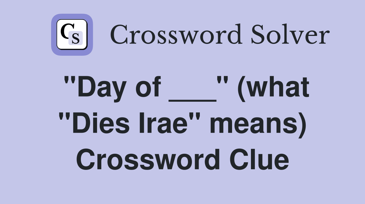 quot Day of quot (what quot Dies Irae quot means) Crossword Clue Answers