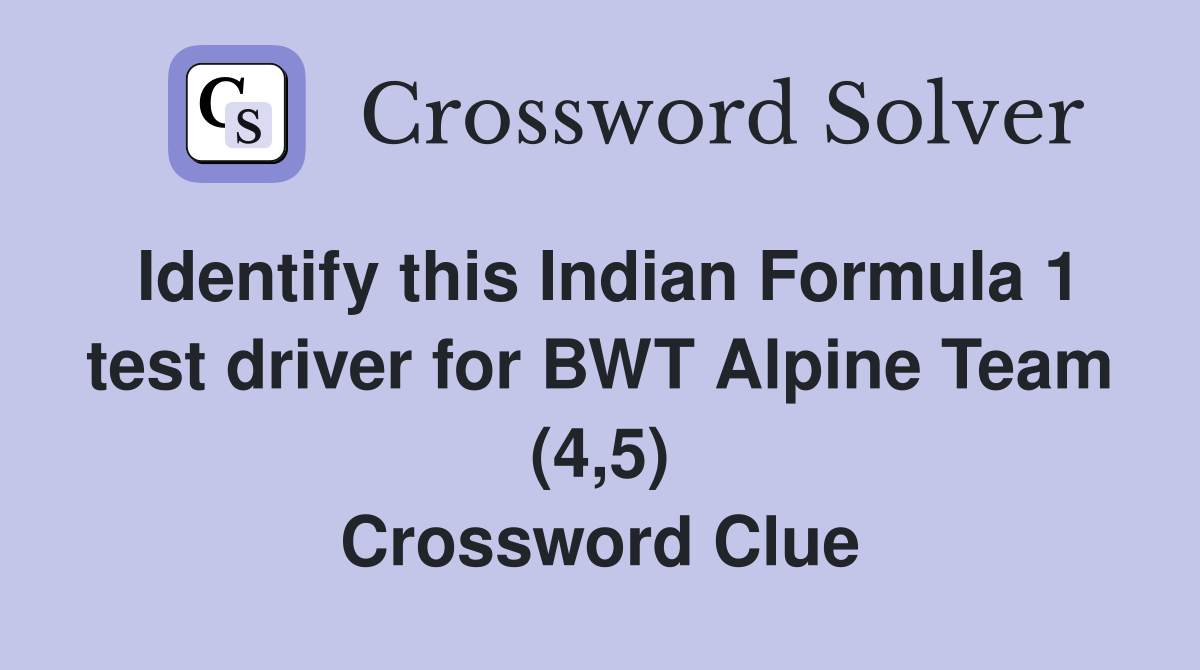 Identify this Indian Formula 1 test driver for BWT Alpine Team (4 5